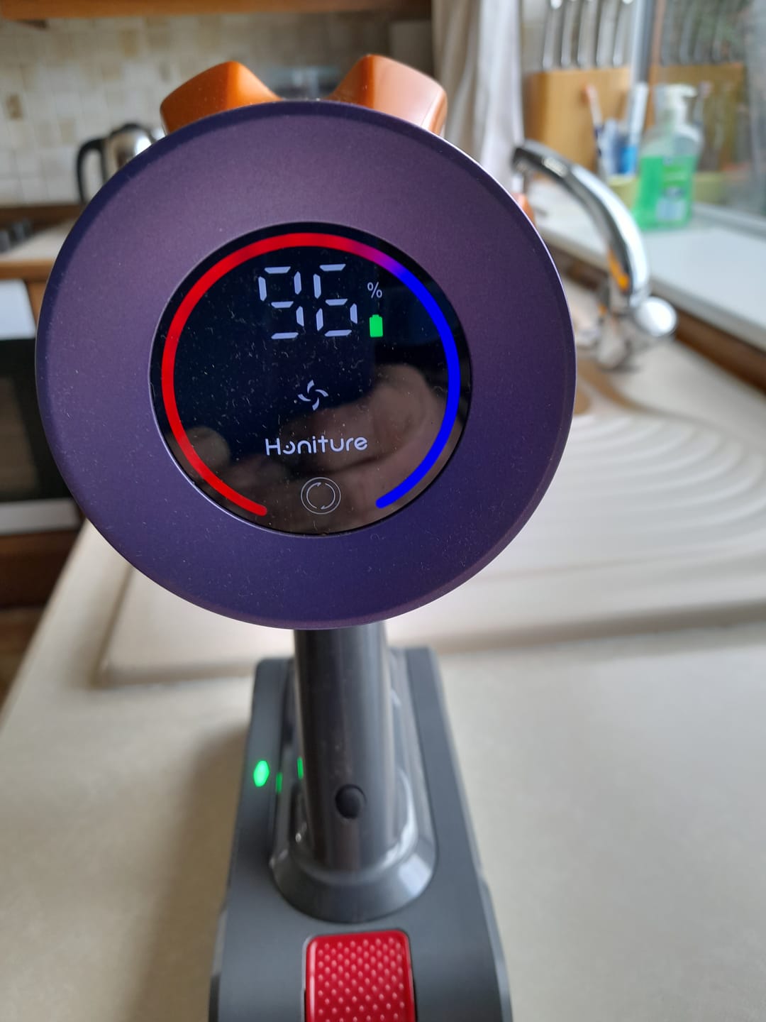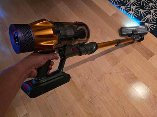 The 25% wider roller prevents hair wrap while LED lights expose dust under furniture, cutting cleaning time in half.